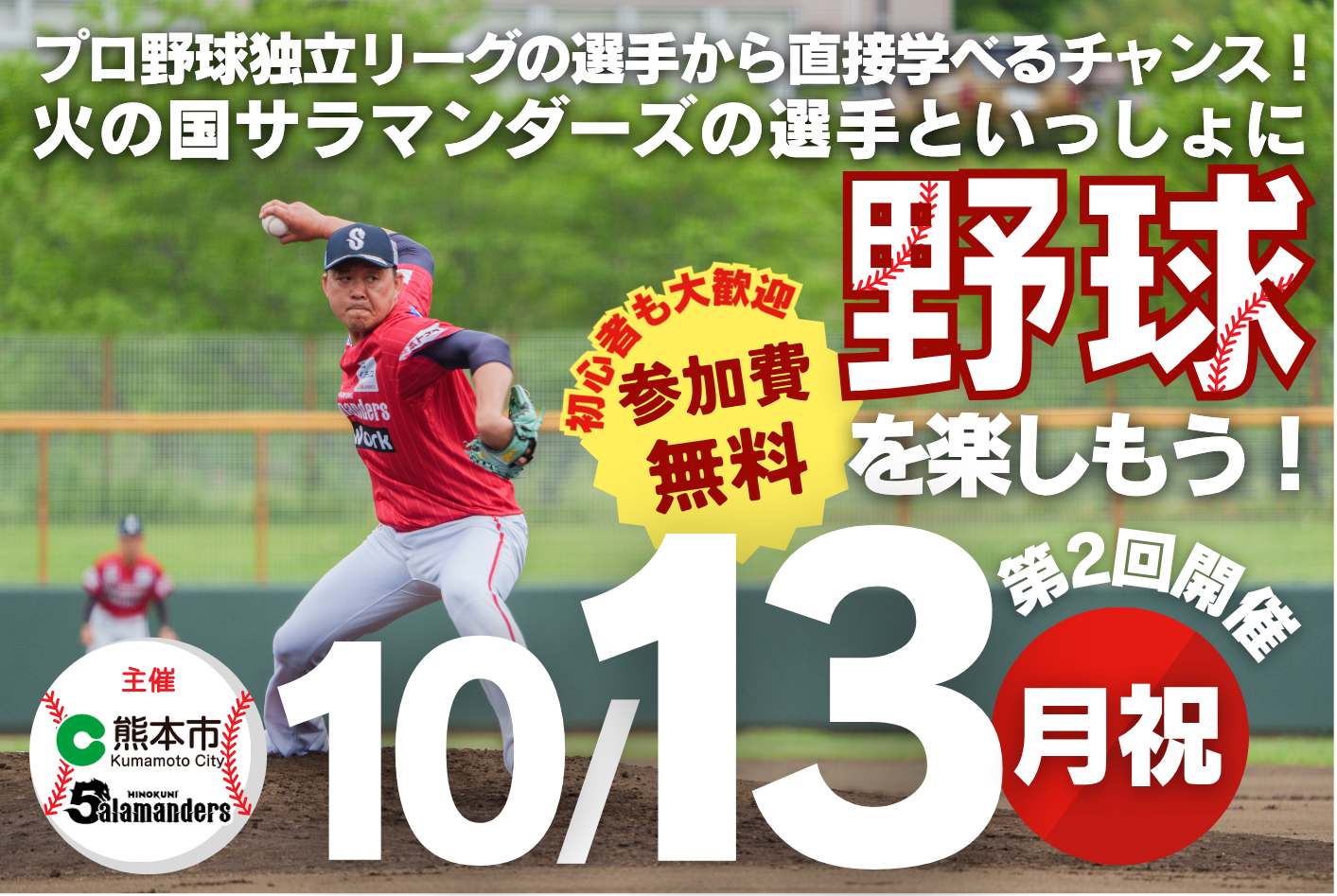 プロ野球独立リーグの選手から直接学べるチャンス! 火の国サラマンダーズの選手といっしょに、野球を楽しもう!