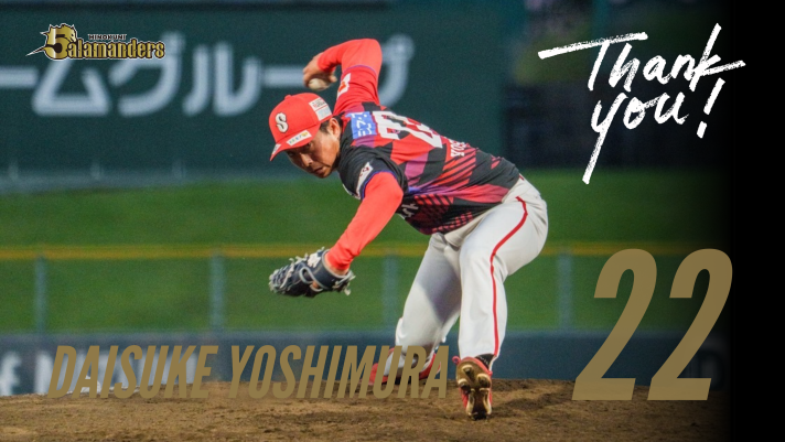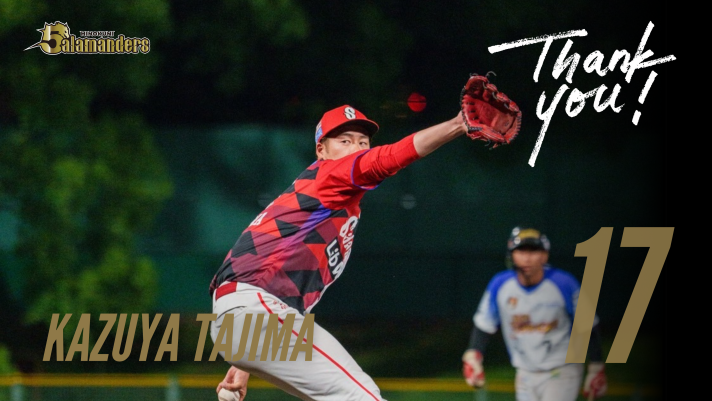 昨年はチームに貢献できず、オファーをくださった球団、応援してくださったファンの皆様に対して非常に申し訳ない気持ちでいっぱいでした。 そんな中、今年再びチャンスをくださったチームに少しは恩返しできたのではないかと思います。 大学の先輩でもある小斉監督には、怖い顔で厳しい言葉も頂きましたが、たまにしか見せない笑顔での「ナイスピッチング」はとても励みになりました。 荒西さんには2年間公私共に大変お世話になりました。 昨年は期待に応えられずすみません! 今年は一緒に戦えて嬉しかったけど、最後まで何も勝てなかったのが悔しいです! 大崎コーチ また一緒にできて嬉しかった! 野球は最高だね。 共に戦った投手陣 2年間とっても楽しかったです! 98世代で行った数えきれない遠征飯、俺のおふざけに付き合ってくれた後輩たち、全ての時間が宝物です。 最後になりますが、2年間、球団・スポンサー・ファンの方々には大変お世話になりました。 暑い中応援してくださった皆様は本当に日本一の応援団です。 来年はサラマンダーズが日本一を奪還してくれると思います! ありがとうございました!