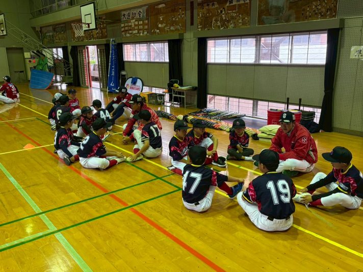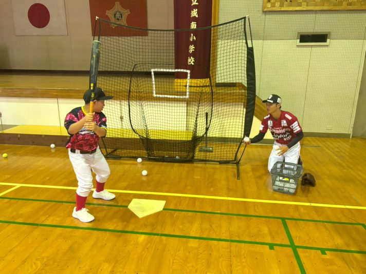 その後は3班に分かれ、バッティングやノックなどの練習に取り組みました。限られたスペースの中でも工夫を凝らしながら、 選手たちが直接指導を行い、技術面だけでなく考え方や意識の部分についても伝える機会となりました。