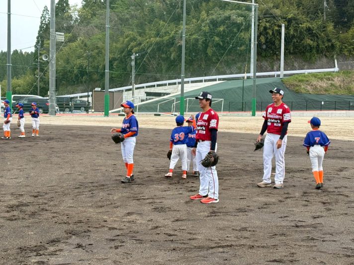 当日は、キャッチボールやノック、ピッチングなどの実技指導に加え、質問コーナーも実施し、選手たちが直接アドバイスを行いました。 参加者の皆さんは真剣な表情で取り組み、積極的に質問する姿が印象的でした。 今回の野球教室では、通常の交流活動よりも一歩踏み込んだ、本格的な野球指導を行うことができ、技術面・意識面の双方において充実した時間となりました。