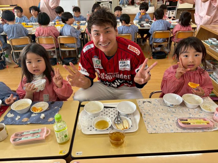 その後、園児の皆さんと一緒に給食をいただき、楽しい時間を過ごしました。